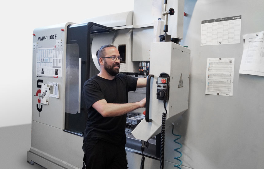 Bei der MMV-1100 F überzeugte Herrn Sohns die solide Ausführung des Kreuztisches und die sehr breiten und „sehr schönen“ Schneeberger Rollenführungen. „Stark genug, schnell genug, passt!“ bringt es Herr Sohns prägnant auf den Punkt.